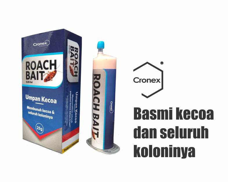 PENGGUNAAN PADA: Berbagai macam jenis kecoa. Cronex Roach bait bekerja dengan cara memblokade saluran saraf Glutamate Chloride (GluCl) pada sistem saraf pusat kecoa, menyebabkan kecoa kehilangan koordinasi otot, kejang, muntah, dan akhirnya mati.