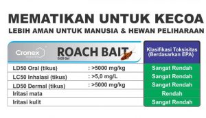 100% kill rate dalam 3-7 hari*, bekerja untuk berbagai jenis kecoa. (*Berdasarkan uji lab Cronex, sample 300 kecoa dalam lingkungan terkontrol)